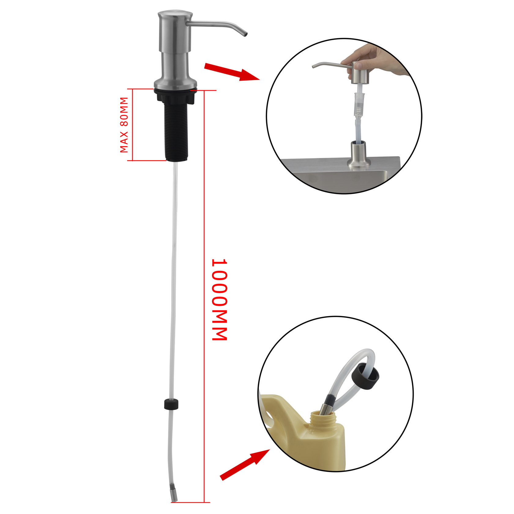 Дозатор для кухонной мойки, без колбы, для забора жидкого моющего средства из иной ёмкости, H внешней части = 83 мм, D нажимного элемента = 38 мм