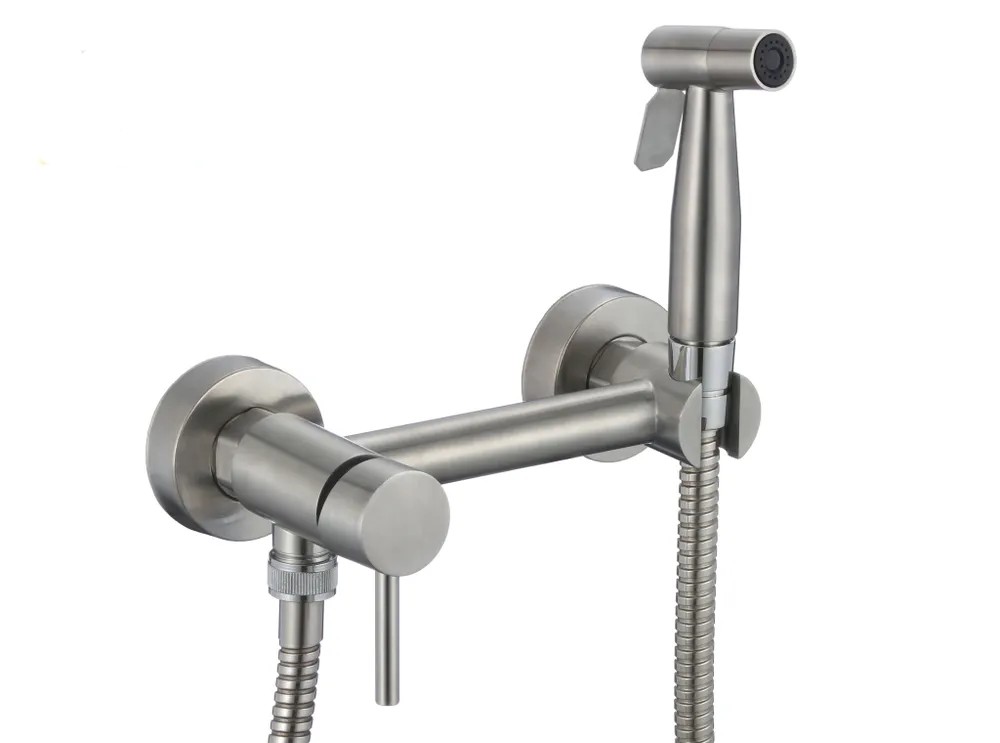 Смеситель с гигиеническим душем выполнен из высокопрочной нержавеющей стали марки 304 и может выдержать давление, в несколько раз превышающее стандарт водонапорной системы дома. Крепкий литой корпус устойчив к механическим повреждениям, а современный дизайн смесителя в черном матовом цвете органично впишется в интерьер любой ванной комнаты.Мелкодисперсный аэратор на распылителе гигиенического душа минимизирует нежелательные брызги и значительно снижает уровень производимого шума. При этом напор воды остается оптимальным для использования сантехнического прибора, не вызывая дискомфорта.Рукоять смесителя для биде комфортна в управлении, а за точную настройку температуры и напора воды отвечает керамический картридж.Смеситель с гигиеническим душем монтируется в стену с помощью минимума необходимы инструментов, в комплекте вы получаете сразу все необходимые детали для полноценного использования оборудования: сам смеситель, шланг, лейку, резиновые прокладки и декоративные настенные накладки-отражатели. Изделие упаковано в заводскую коробку, каждый элемент находится в дополнительной защите.